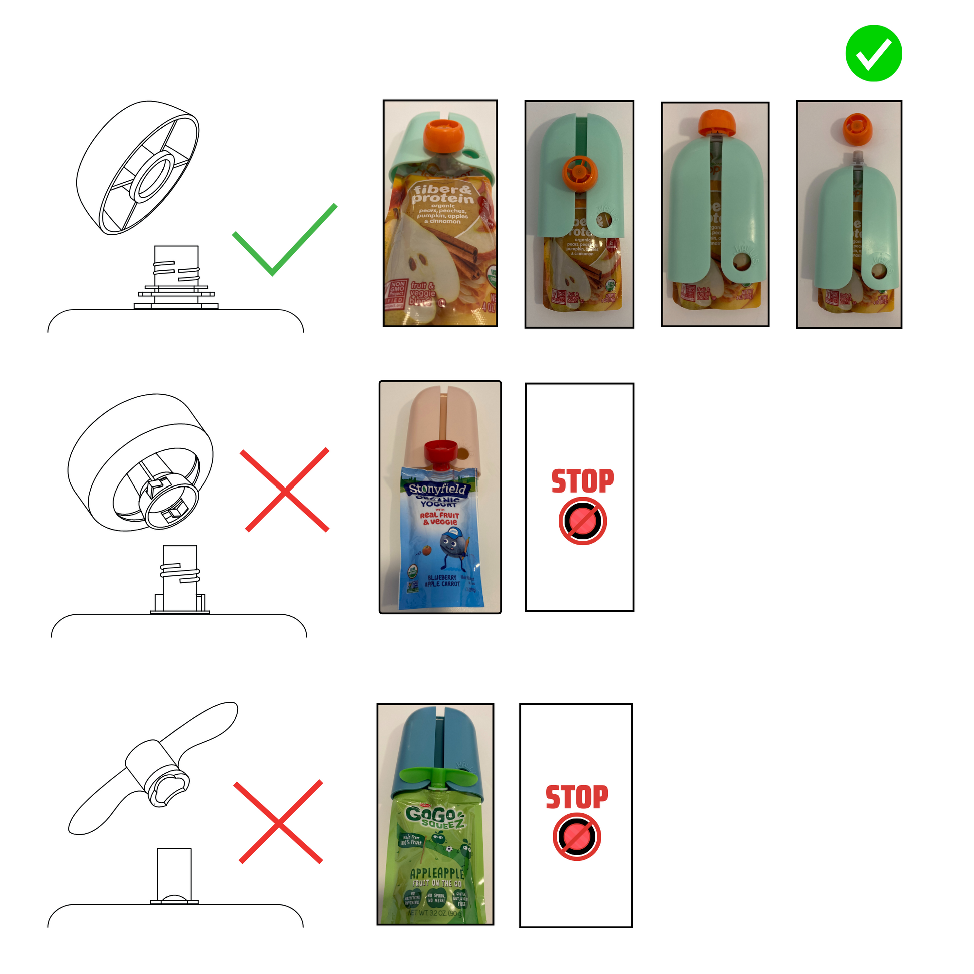 - NO MORE MESSY CLEAN-UPS: it prevents the child from pressing too hard on the squeeze pouch.